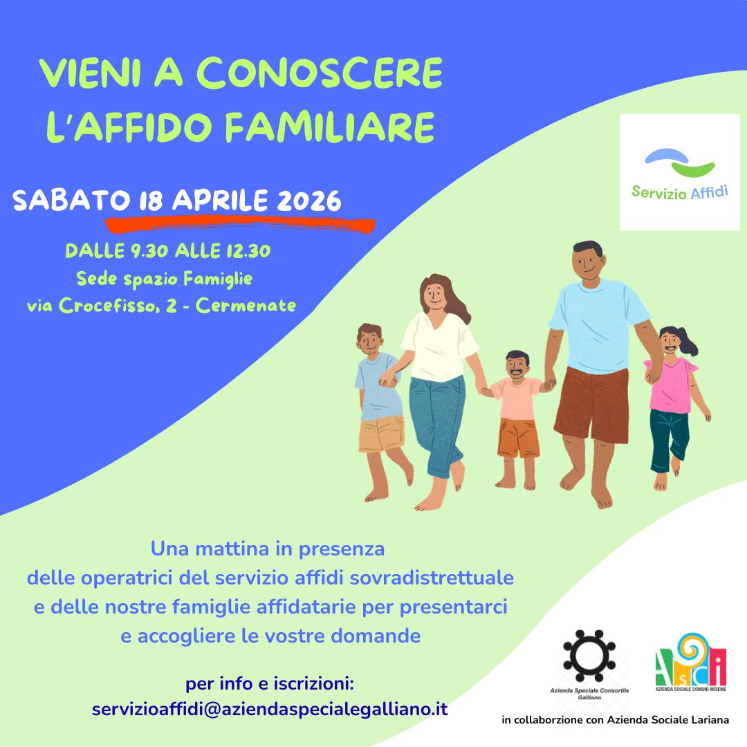 Per info e iscrizioni scrivere alla mail servizioaffidi@aziendaspecialegalliano.it